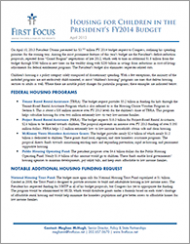 On April 10, 2013, President Obama released his Fiscal Year 2014 budget request. This fact sheet looks at child housing programs in his budget proposal, highlighting programs that reach across various departments that include the Department of Agriculture, the Department of Education, the Department of Health and Human Services, and the Department of Housing and Urban Development.