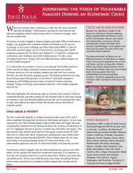 This brief highlights the devastating impacts of poverty and economic shifts on vulnerable families, provides evidence for the increased risk of child abuse during an economic crisis, and identifies federal policies that can be implemented today to help states address the needs of high-risk families during this difficult economic period.
