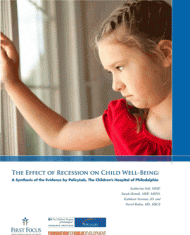 When the economy takes a downturn, it often hits the most vulnerable children and families the hardest. The recent recession is no exception. In their paper, “The Effect of Recession on Child Well-Being: A Synthesis of the Evidence by PolicyLab, Children’s Hospital of Philadelphia,” Katherine Sell and colleagues at PolicyLab at The Children’s Hospital of Philadelphia (CHOP) Research Institute synthesize evidence of the effects of the recent and prior recessions on child well-being.